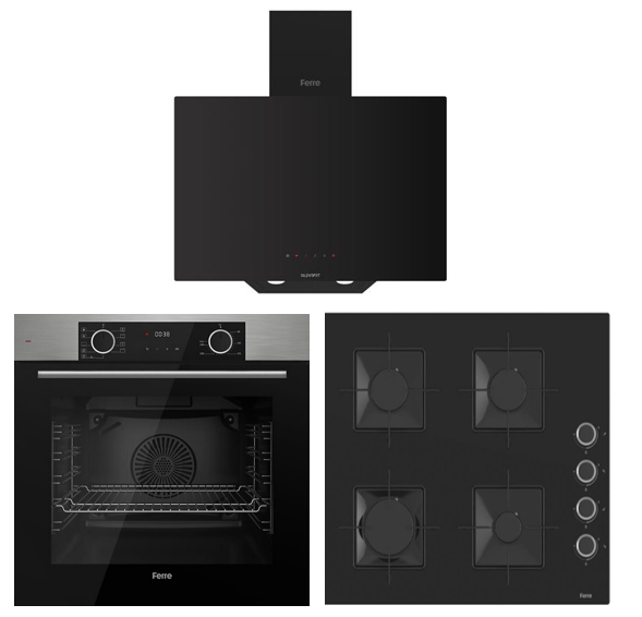 Ocak : 4 Gözü gazlı ankastre Siyah cam ocak. Kare Emaye Izgara
